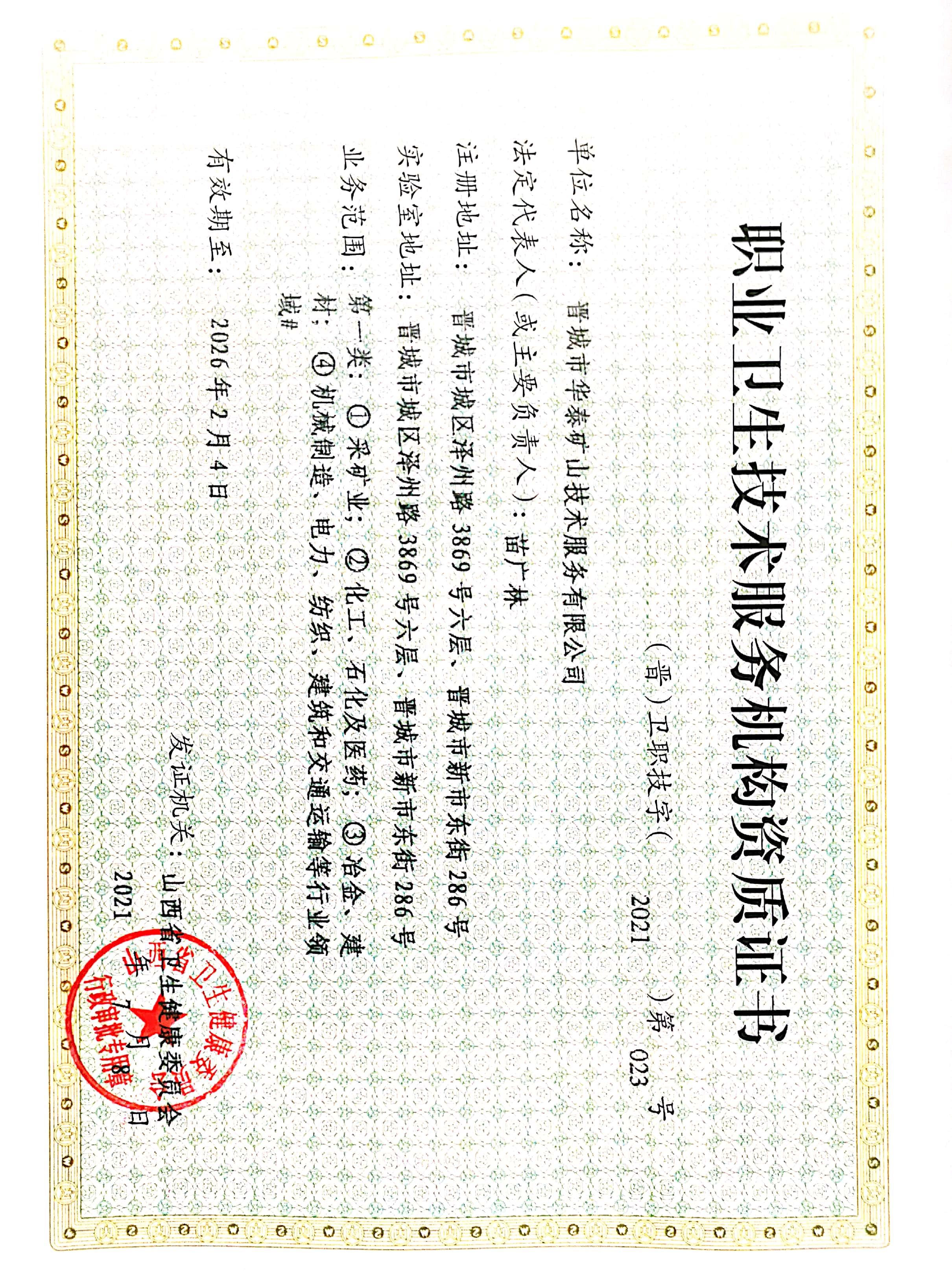 晉城國(guó)投華泰科技有限公司(以下簡(jiǎn)稱(chēng)華泰公司)是一家經(jīng)營(yíng)性國(guó)有企業(yè),注冊(cè)資金1000.2萬(wàn)元(由晉城市華泰礦山技術(shù)服務(wù)有限公司和晉城澤泰安全技術(shù)服務(wù)有限公司合并整合組建,國(guó)投全資)。公司持有山西省衛(wèi)生健康委員會(huì)頒發(fā)的《職業(yè)衛(wèi)生技術(shù)服務(wù)資質(zhì)證書(shū)》、山西省應(yīng)急管理局頒發(fā)的《安全評(píng)價(jià)機(jī)構(gòu)資質(zhì)證書(shū)》和山西省市場(chǎng)監(jiān)督管理局頒發(fā)的《檢驗(yàn)檢測(cè)機(jī)構(gòu)資質(zhì)認(rèn)定證書(shū)》等資質(zhì),設(shè)施設(shè)備、能力、資質(zhì)配套齊全。...【詳細(xì)信息】